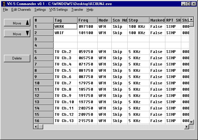 Use with care. I don't own a VX-5, so I have only briefly tested the software with borrowed radios. I have been working off and on trying to update VX-5 Commander to the level of some of my other software, and it is almost there. However, there are still some quirks, and some more things I would like to add. But I have been too busy lately to work on it, so I am releasing it in it's current state, which should be a LOT better than the 0.1 Beta.Jim